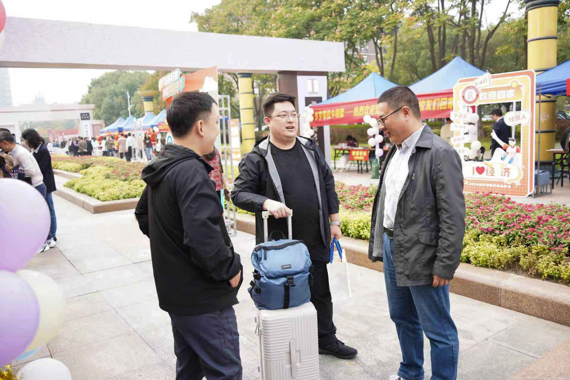 摊位前留下重返母校的第一张合影,欢声笑语在广场上空回荡,重逢的喜悦从这里开始蔓延,也为后续的系列庆祝活动拉开了温情的序幕。