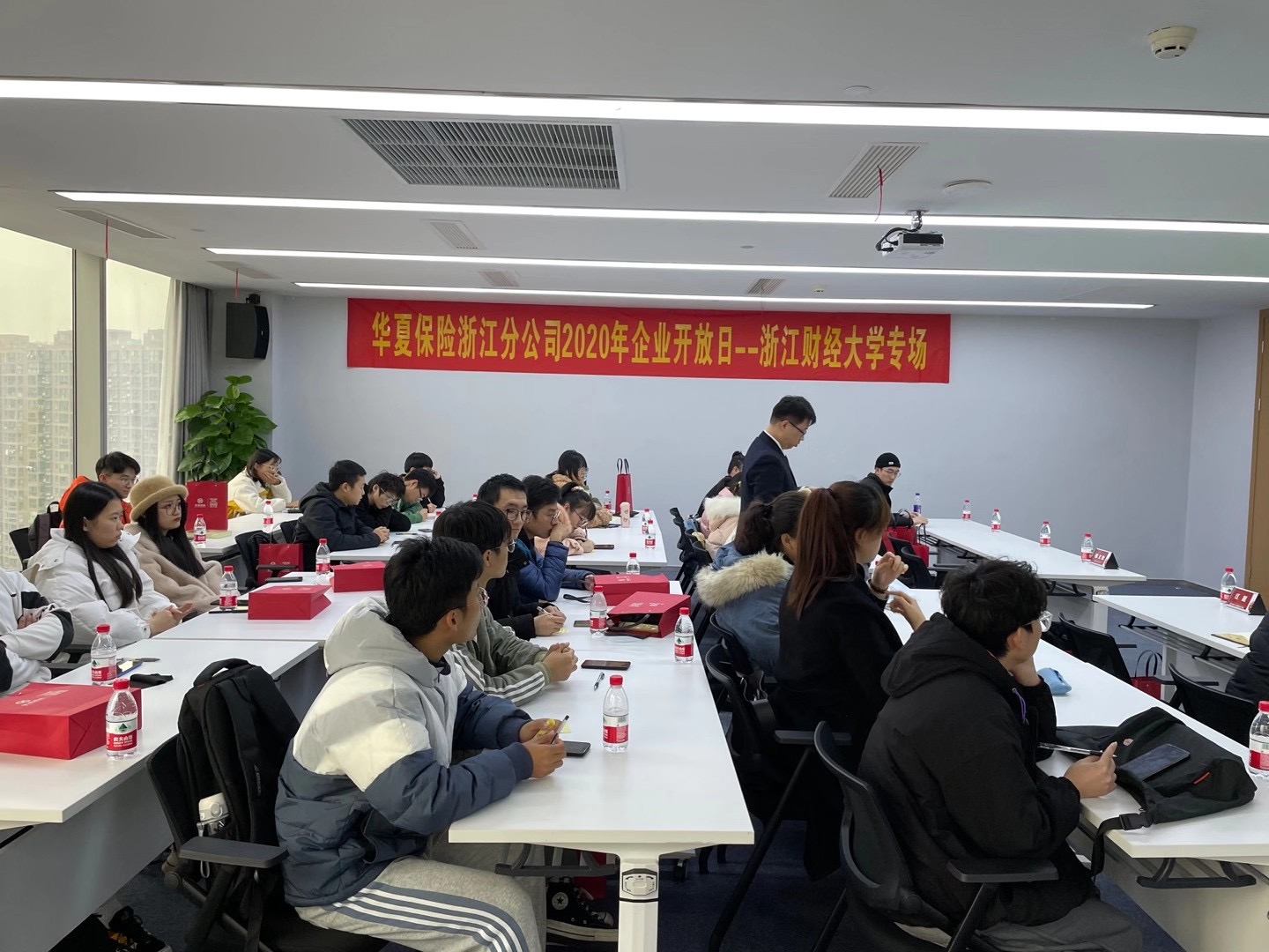 32位师生走进华夏保险浙江分公司,参加华夏2020年企业开放日。本次活动通过公司行业介绍、“风华行动”管培生项目介绍、学长学姐面对面、总经理寄语等环节,进一步巩固校企合作关系,增进企业与盘口分析
