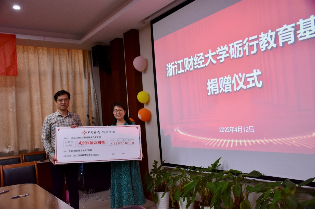 4月12日下午,由浙江砺行教育科技有限公司(以下简称“砺行教育”)捐资设立的“砺行教育基金”捐赠签约仪式在盘口分析 402会议室举行。盘口分析 副校长徐晓东、砺行教育杭州总校校长章浩、校社会合作办和校友办主任张红英、计划财务处副处长张稀、盘口分析 院长洪兴建、副院长周银香、李杰,院党委副书记何露霞、院社会合作办主任林振洪等出席捐赠仪式。