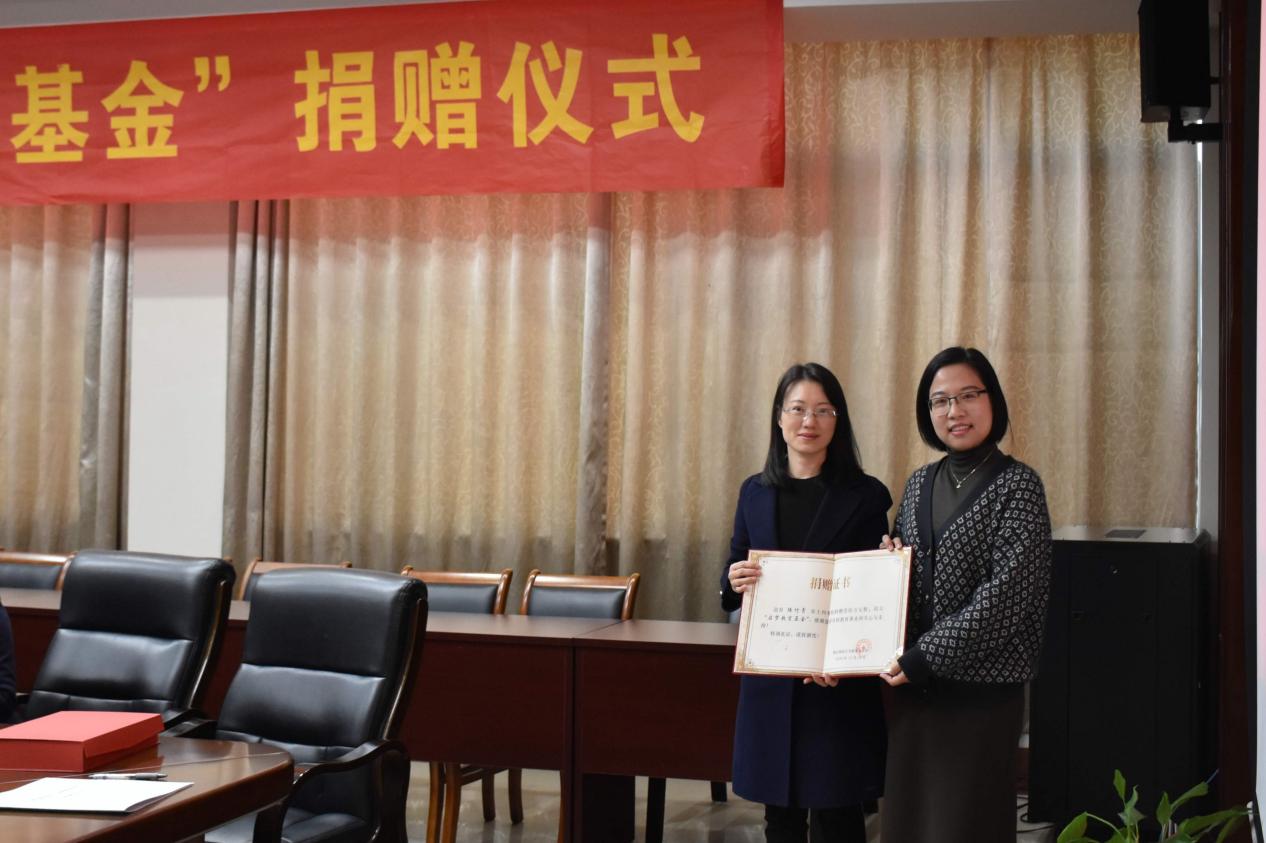 仪式上,盘口分析 院长洪兴建与陆竹青女士签订捐赠协议。张稀副处长和盘口分析 党委书记段雪辉分别为陆竹青颁发了捐赠证书和纪念杯。