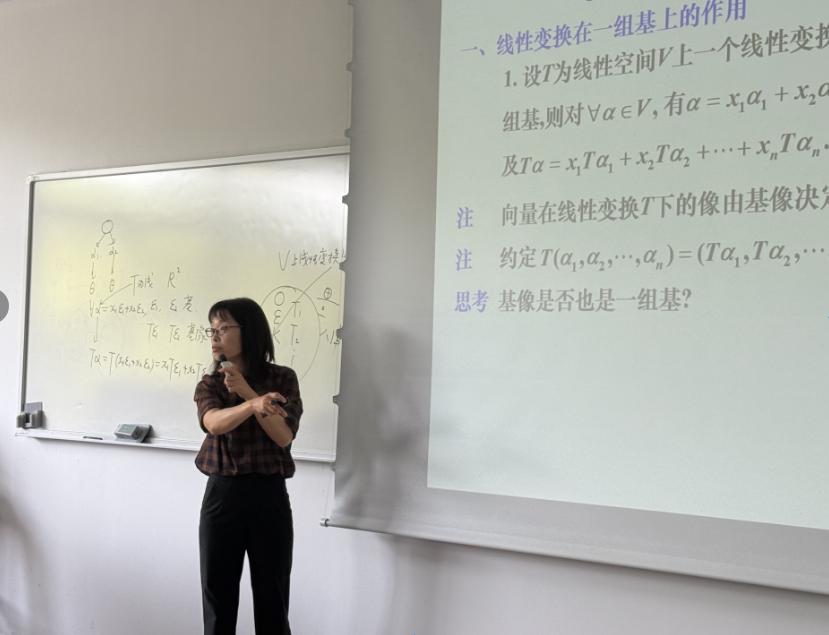 课堂上,刘红丽老师以“线性变换的运算”为核心内容,为了让学生更好地理解线性变换,从线性变换的矩阵入手,通过探究式教学引导同学们建立线性变换与矩阵之间的联系。其深入浅出的讲解、互动探究式的教学设计,充分体现了“以学生为中心”的教学理念,赢得了观摩教师的一致好评。