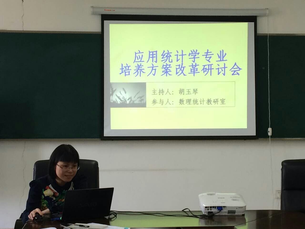 在6号楼402会议室召开了“应用统计学专业培养方案”研讨会,会议由教研室主任胡玉琴老师主持,数理统计教研室全体教师参加了本次研讨。