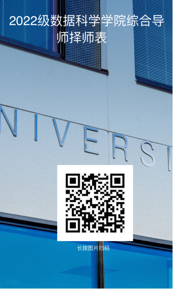 1、学生在10月17日前填写《综合导师制学生择师表》,微信扫描下方二维码。大数据专业学生需在主要课程外填写《C语言编程基础》、《Python数据分析》课程成绩。