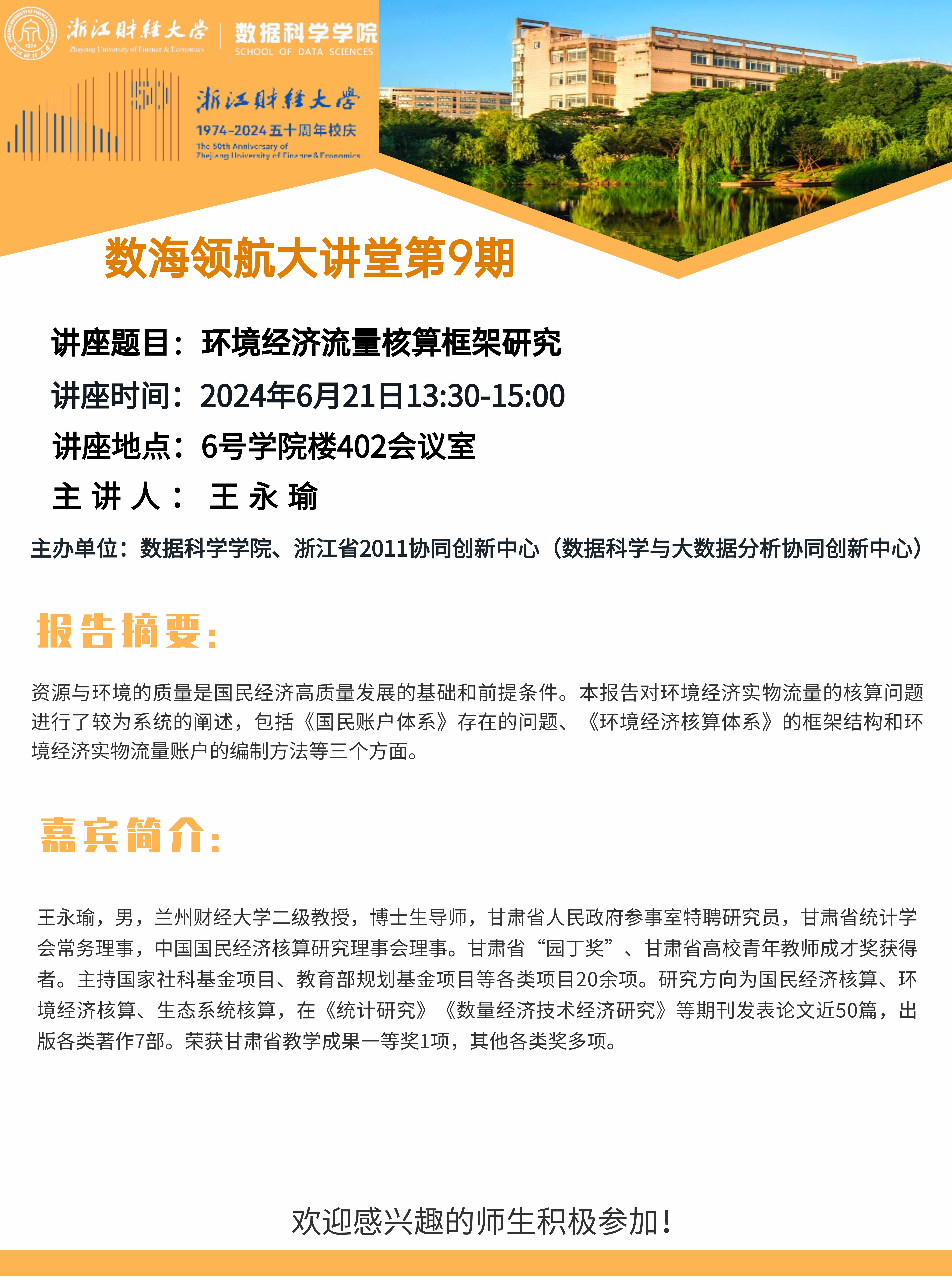 上一条:数海领航大讲堂2024年第10期——暨南大学陈光慧教授 下一条:关于开展浙江省第五次全国经济普查课题招标工作的通知