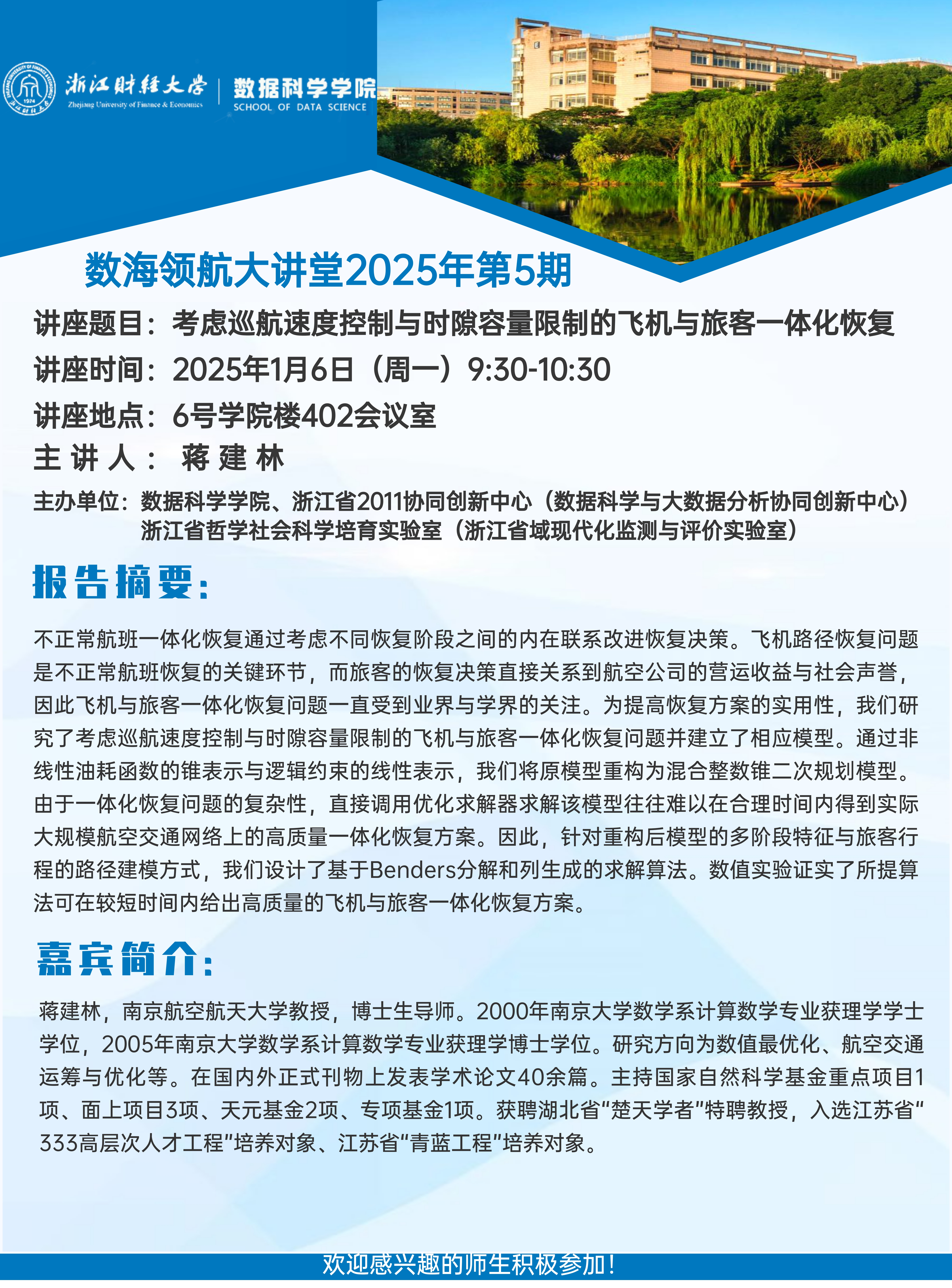 上一条:数海领航大讲堂2025年第6期——杭州电子科技大学凌晨教授 下一条:盘口分析 讲座信息——澳大利亚莫道克大学王海副教授