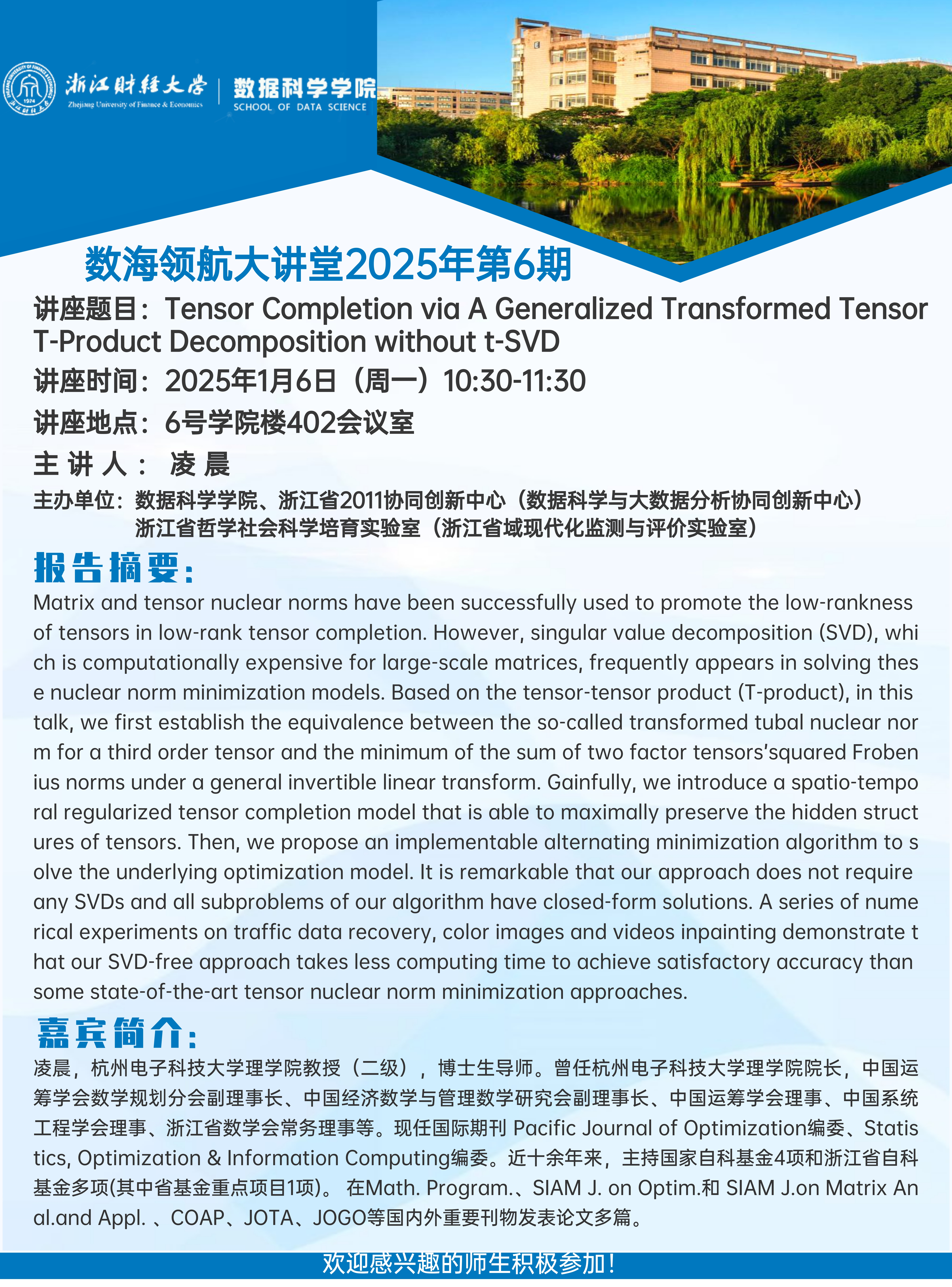 上一条:喜报!盘口分析 7位老师入选“2024中国知网高被引学者预发布名单” 下一条:数海领航大讲堂2025年第5期——南京航空航天大学蒋建林教授