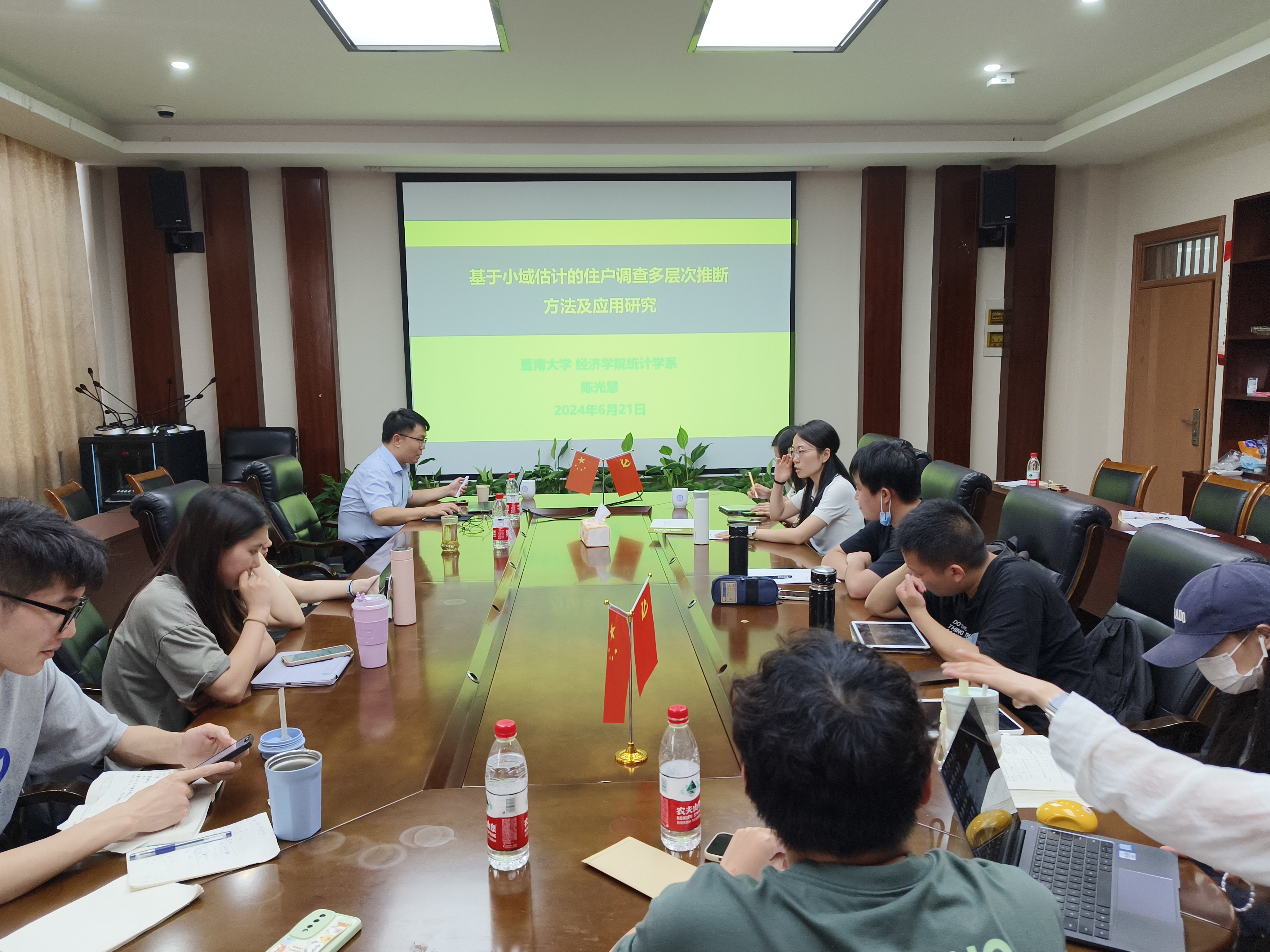 举行数海领航大讲堂2024年第10期。本期邀请暨南大学陈光慧教授为全院师生带来一场题为“基于小域估计的住户调查多层次推断方法及应用研究”的学术讲座。讲座由经济统计系主任石薇副教授主持,部分教师及研究生参加了此次讲座。
