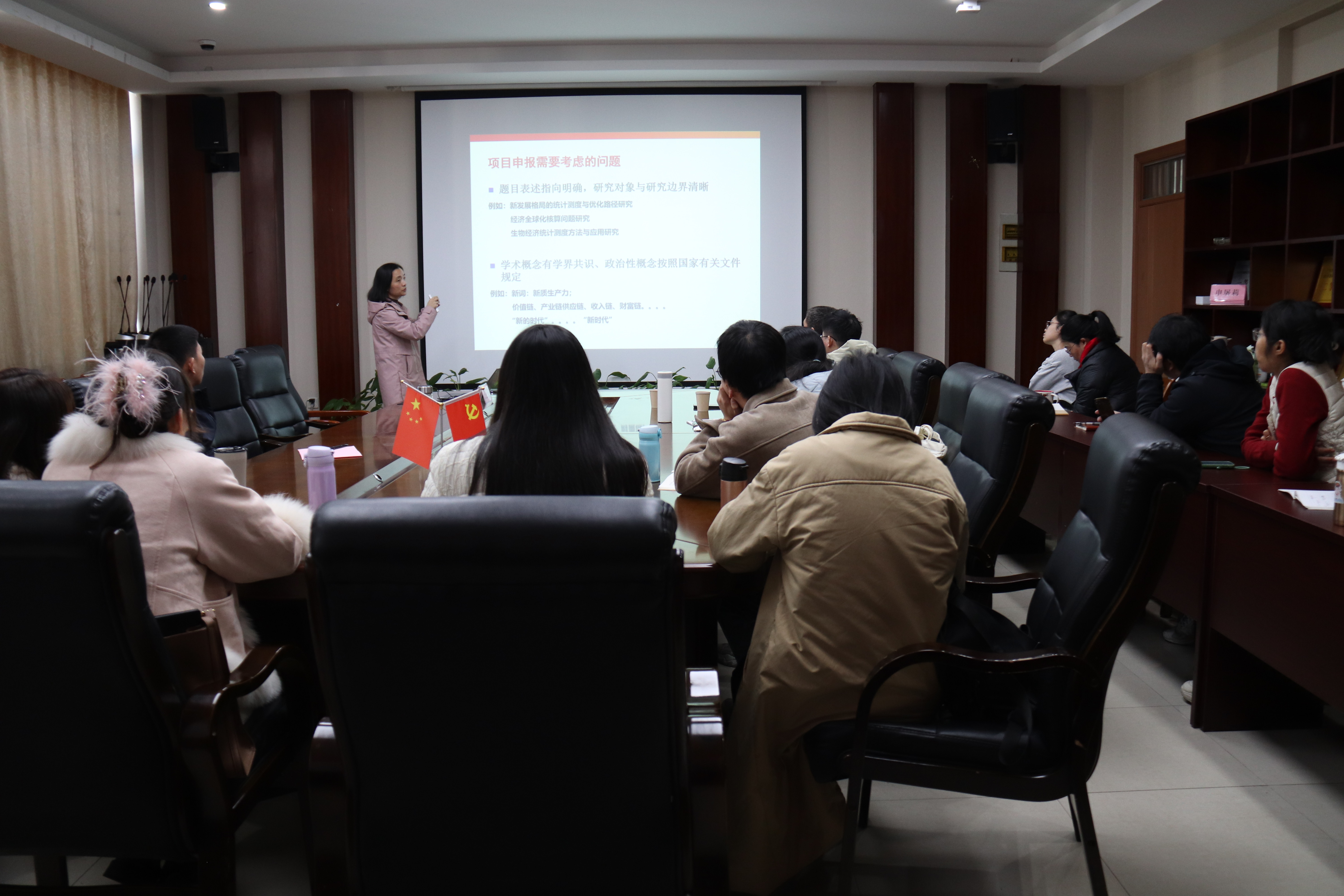 王亚菲教授作题为“学术论文撰写与科研项目申报”的学术讲座。讲座以生态产品价值核算为例阐释如何确立题目并提出清晰的论点,详细阐述了研究方法的选择与应用,以及如何条理清晰地展示数据分析成果。此外,她还全面介绍了论文的标准架构与格式规范,以及项目申报书的关键撰写要点。
