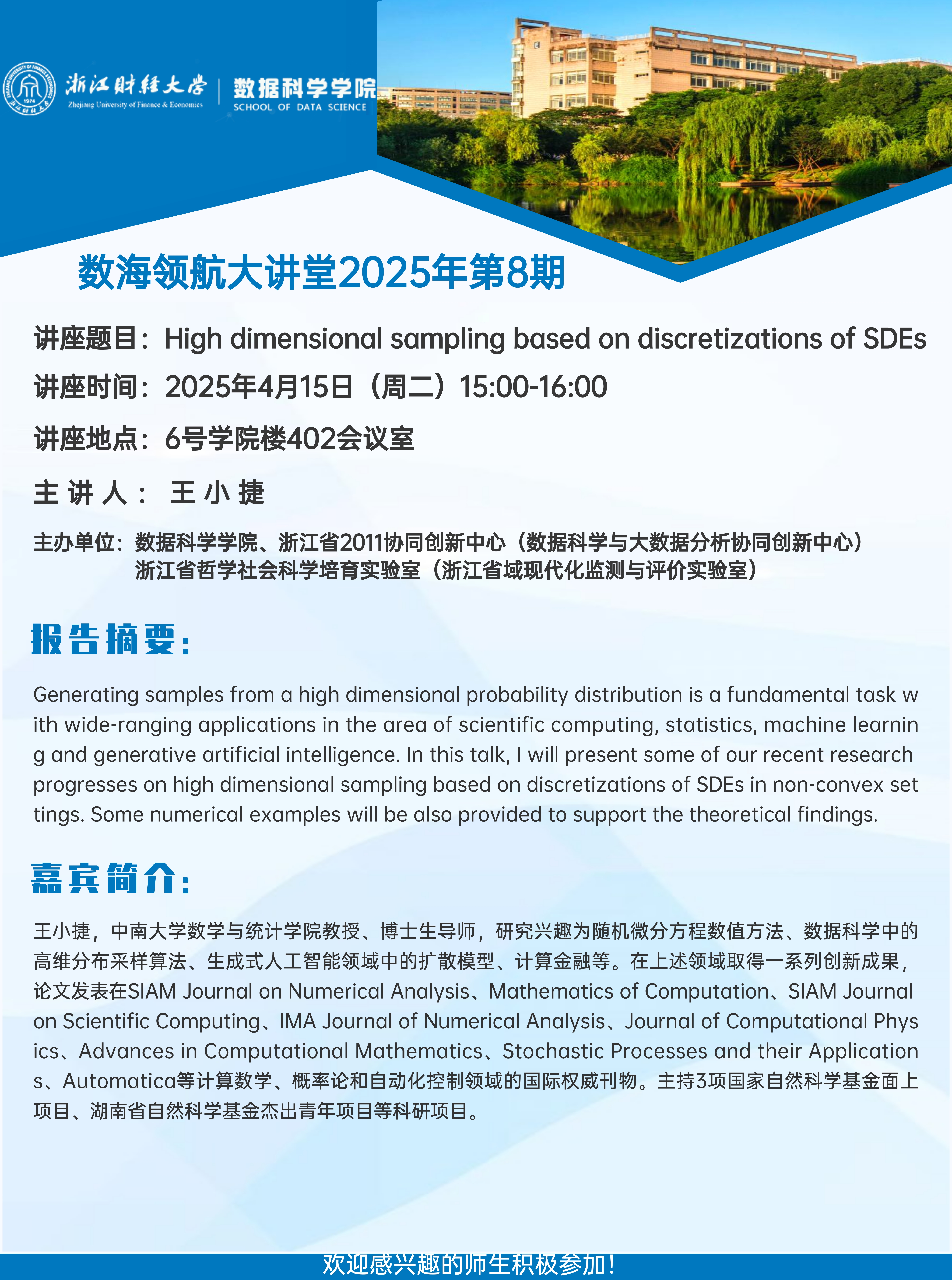 上一条:High dimensional sampling based on discretizations of SDEs——数海领航大讲堂2025年第8期开讲 下一条:文本大数据与宏观经济即时预测——数海领航大讲堂2025年第7期开讲