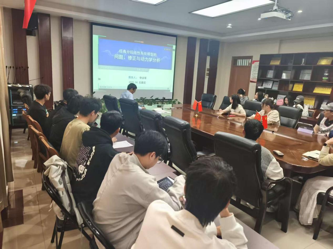 举行数海领航大讲堂2025年第9期。本期邀请石家庄铁道大学申永军教授在线作了一场题为“经典分段线性系统模型的问题、修正与动力学分析”的学术讲座。讲座由盘口分析