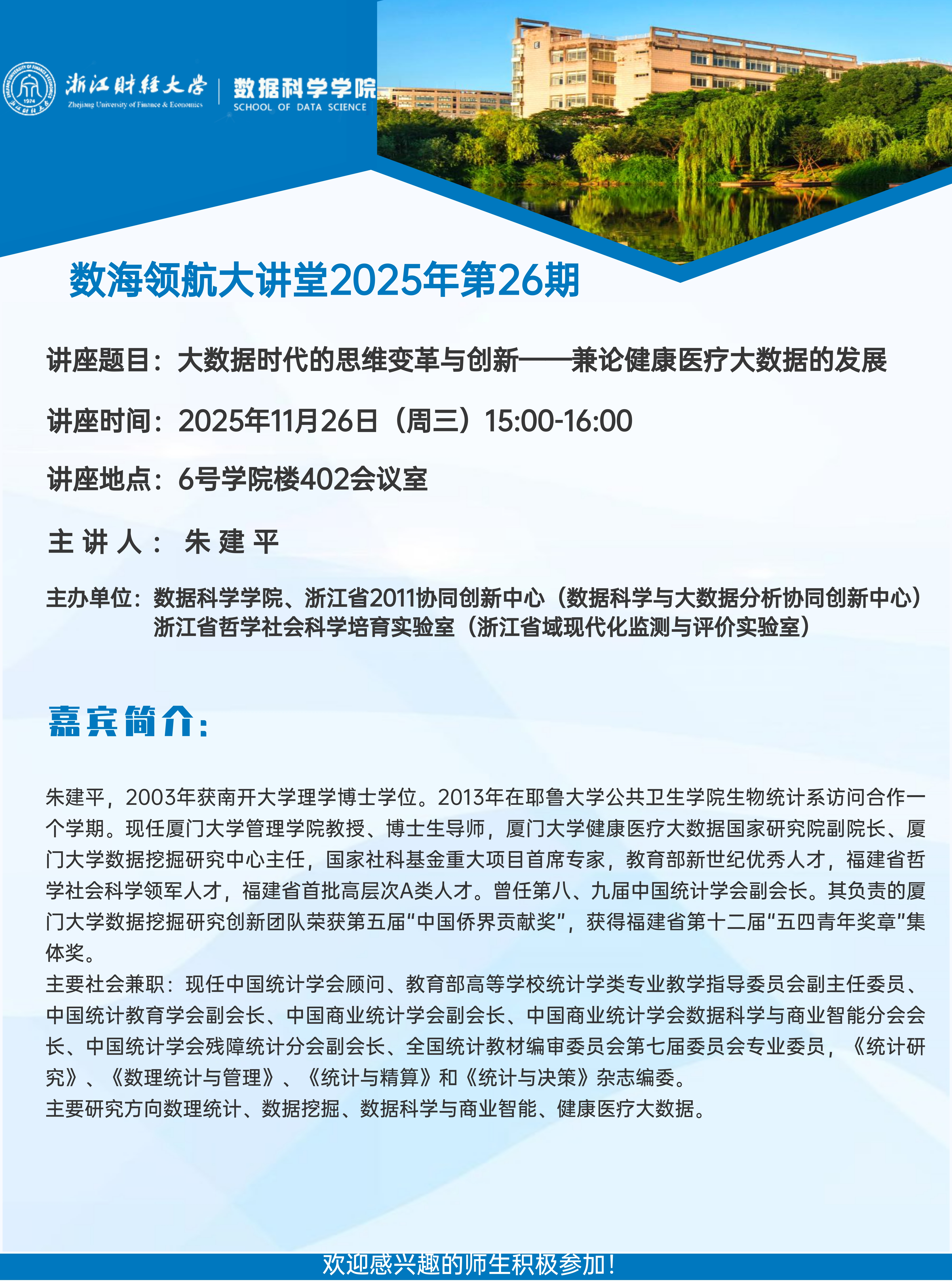 上一条:大数据时代的思维变革与创新——兼论健康医疗大数据的发展 ——数海领航大讲堂2025年第26期开讲 下一条:第三届统计学与数据科学高质量发展论坛在盘口分析 举行