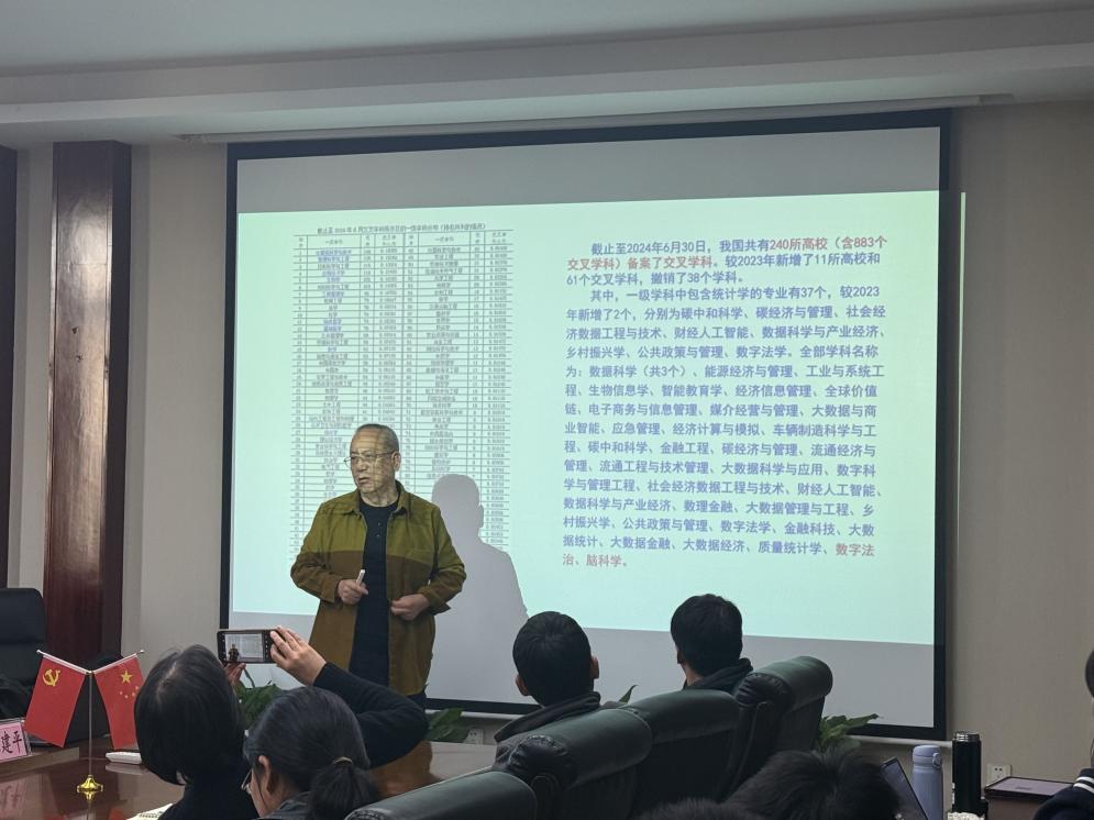 举行数海领航大讲堂2025年第26期。本期邀请厦门大学朱建平教授为师生带来了一场题为“大数据时代的思维变革与创新——兼论健康医疗大数据的发展”的学术讲座。讲座由院长洪兴建教授主持,部分教师与研究生参加了此次讲座。