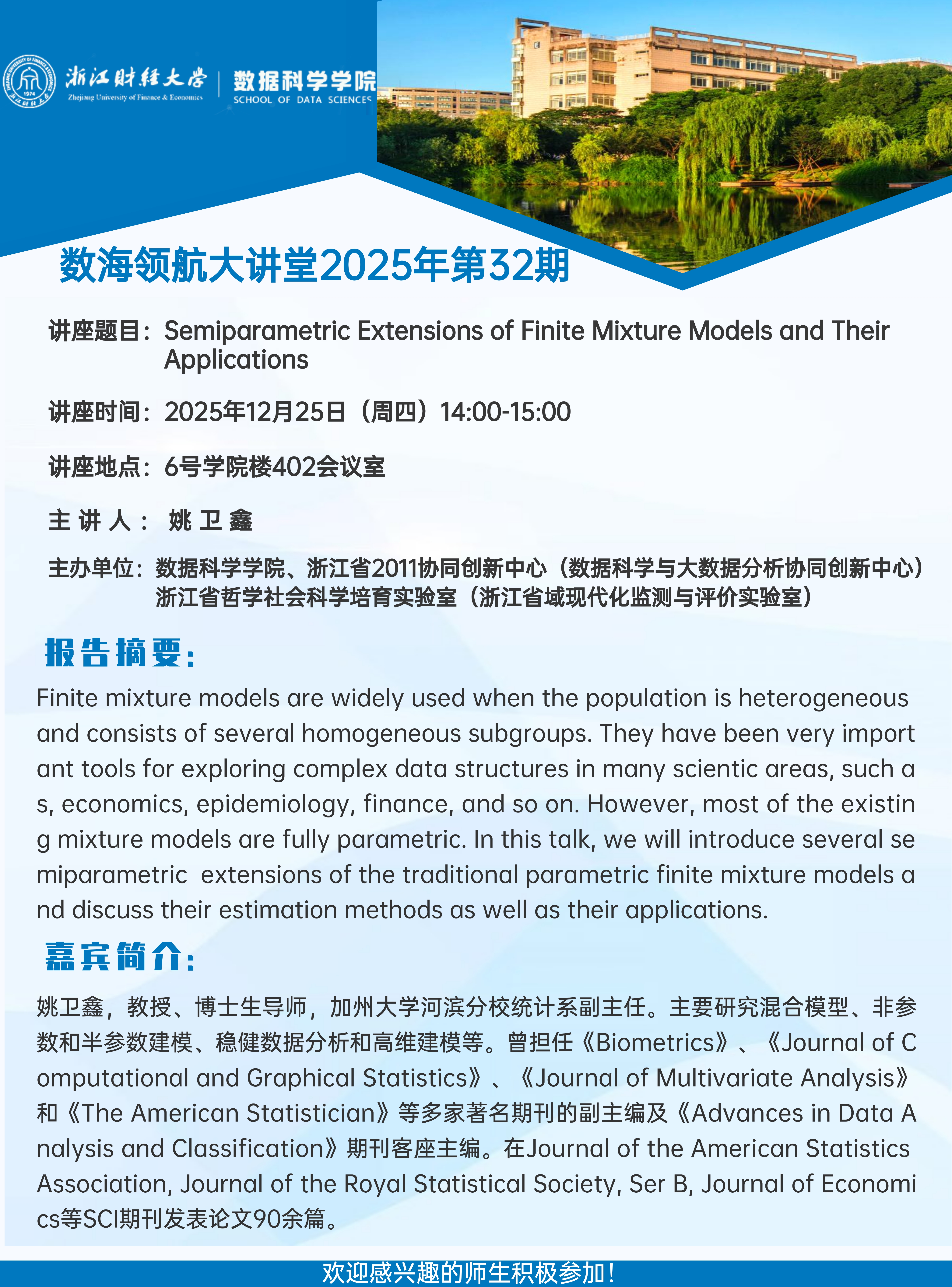 上一条:数海领航大讲堂2025年第33期——南京大学杨俊锋教授 下一条:数海领航大讲堂2025年第31期——浙江师范大学王维凡教授