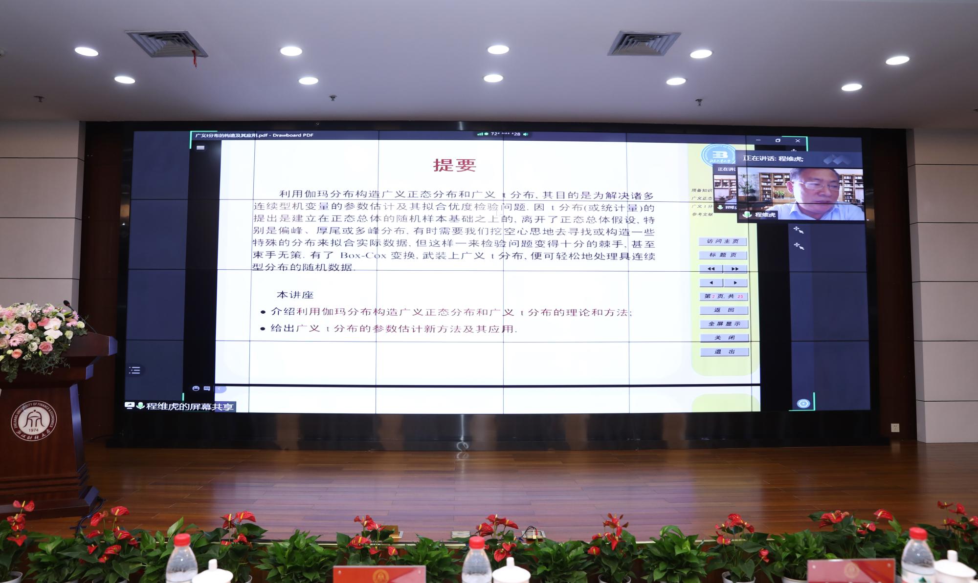 党委书记李金昌分别主持了三个阶段的特邀学术报告。本次会议采取“线上+线下”方式召开,与会专家学者围绕“政府统计”“国民经济核算与高质量发展统计测度”“金融与民生统计研究”“经济统计测算分析”“统计理论方法与信息技术在统计中的应用研究”开展专题研讨。