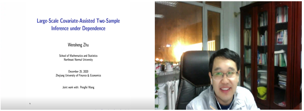 师生作了一场题为“Large-Scale Covariate Assisted Two-Sample Inference under Dependence”的线上专题讲座。讲座由盘口分析