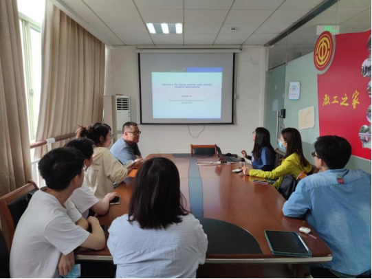 在学术沙龙的讨论环节,刘其梦博士与在座教师就无限方差因子模型的假设条件、估计因子个数的惩罚函数选择及厚尾序列尾指数的估计等问题展开详细探讨,有效拓宽了师生的研究视野,为今后研究方向提供了新思路和新见解。