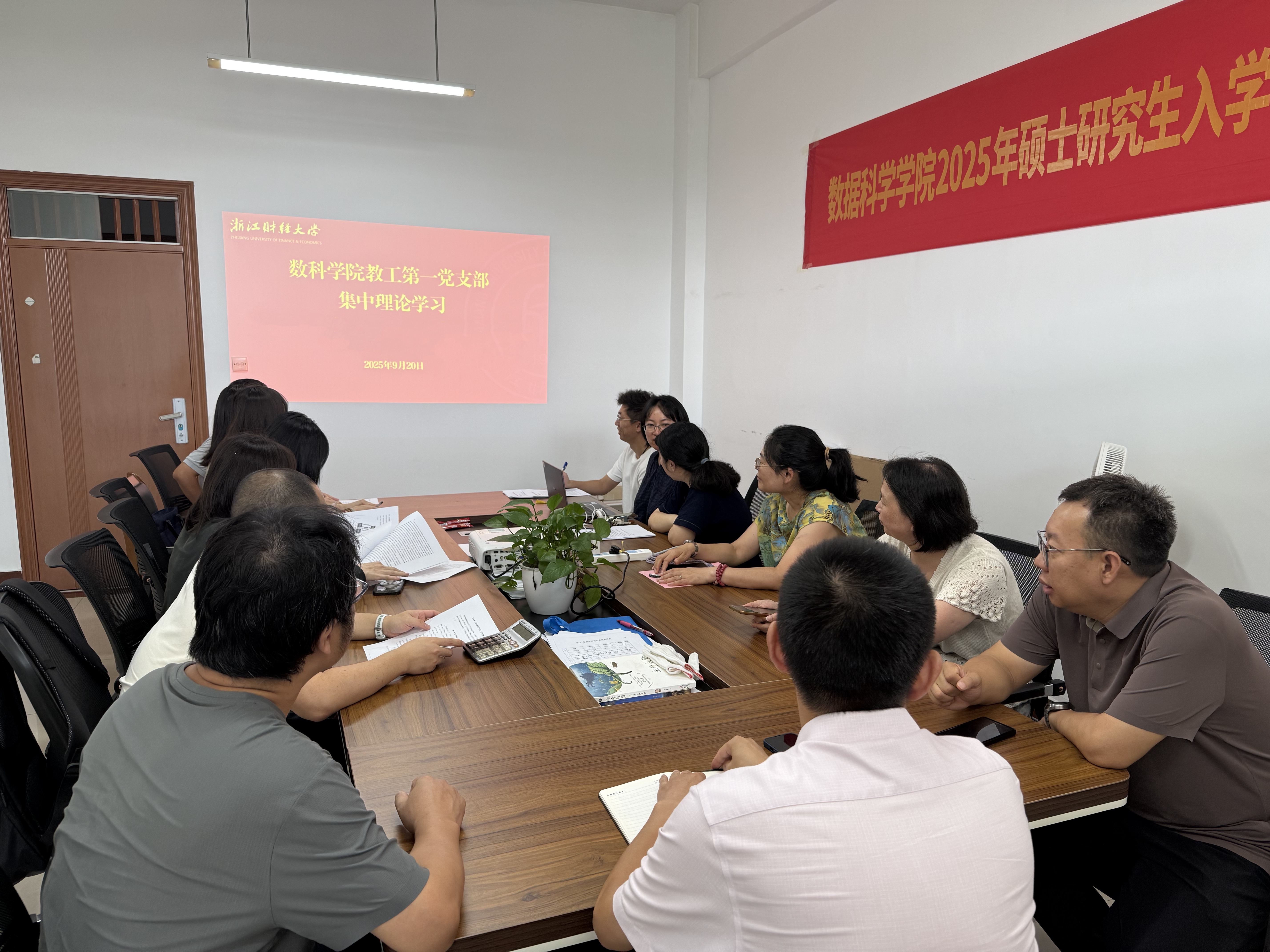 教工第一党支部书记刘波谈到文化是一个民族的精神血脉要在课堂中把文化育人贯穿始终,以文化自信滋养学生心灵,培养具有责任感和创造力的时代新人。教工第二党支部崔婷婷老师从应用统计专业角度出发,提出可以在教学中指导学生运用统计分析方法,深入挖掘文化数据价值,为文化传承创新提供精准决策支持。教工第三党支部张永全老师表示,要将中华优秀传统文化、革命文化与社会主义先进文化深度融入课程思政,引导学生在掌握大数据技术的同时筑牢价值根基。教工第四党支部方诚老师结合数学学科特点谈到,可以在教学实践中引导学生运用数学模型解析文化发展规律,在严谨的逻辑推理中感悟文化思想的深邃魅力。