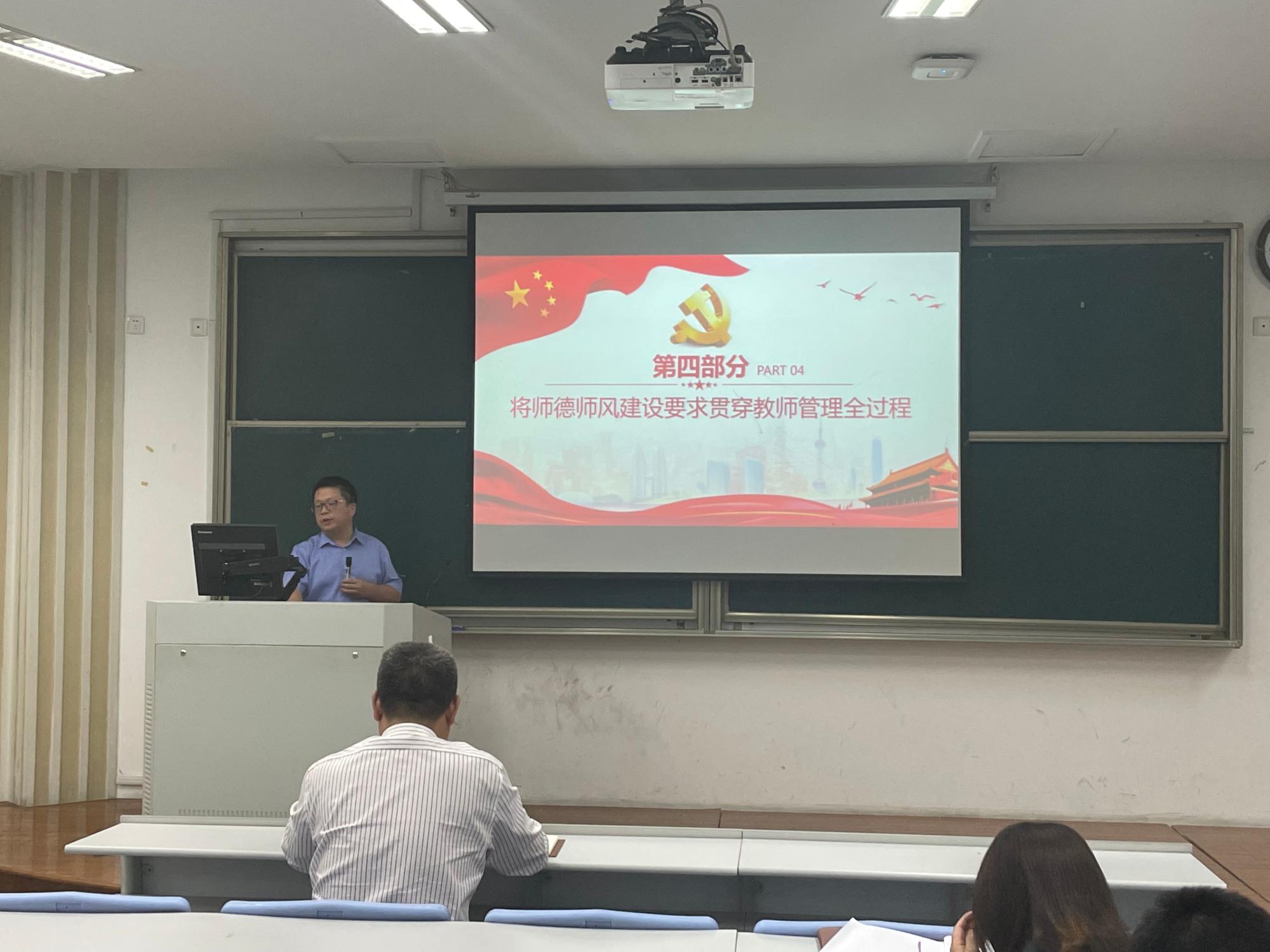 在学习会上,副院长李杰老师围绕习近平总书记关于教育的重要表述和全国教育大会精神,为大家深入解读了《关于加强和改进新时代师德师风建设的意见》。他指出,高校作为社会主义核心价值观的培育者和践行者,要全面加强教师队伍思想政治工作,提升教师职业道德素养,坚持思想铸魂、价值导向和党建引领,突出课堂育德、典型树德、规则立德,引导广大教师以身作则,言传身教。