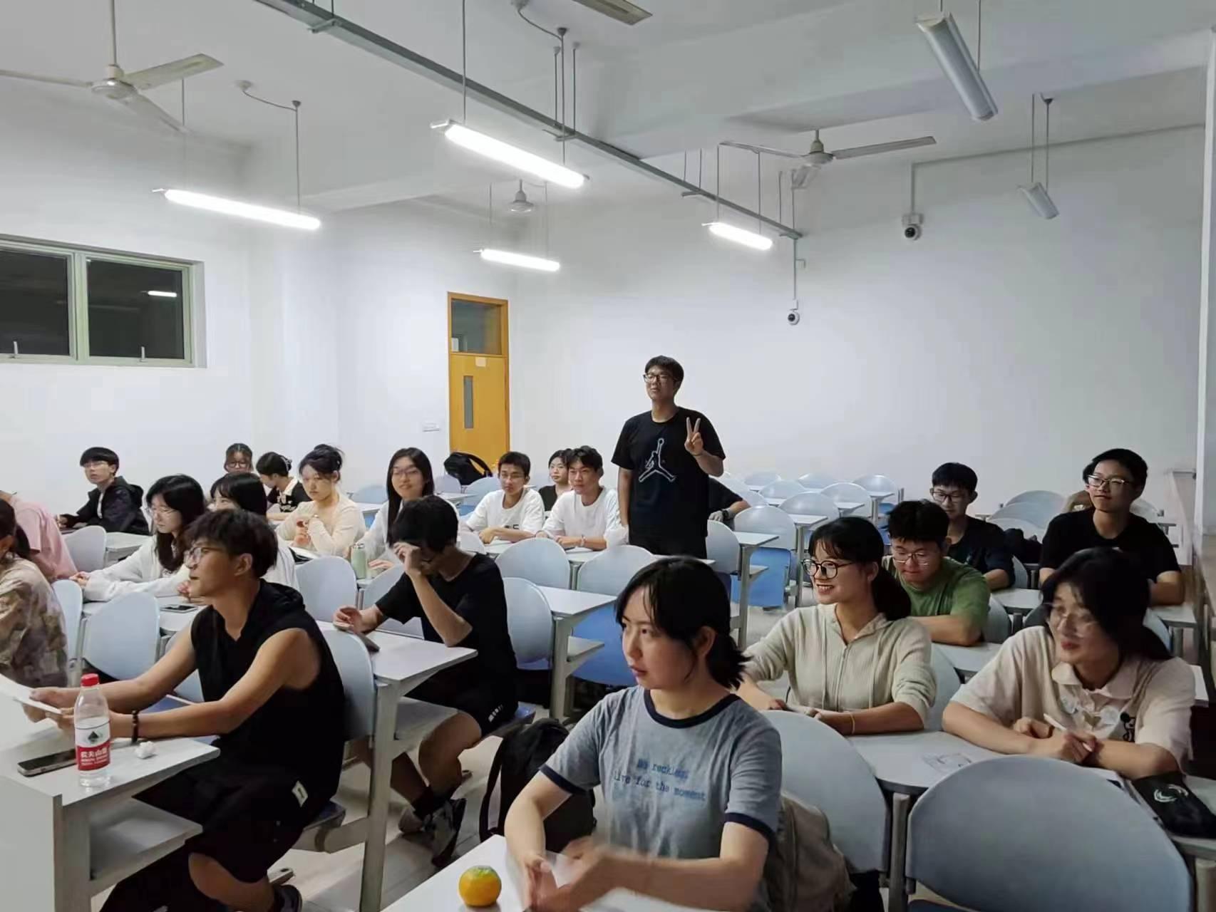 利用晚自习开始前的一段时间,支部组织21级学生干部党员围绕选课、任职、学业、竞赛等各种问题与新生班委展开交流和座谈。各班班委代表提前收集了班级同学的疑问和想要咨询的信息,由学生党员根据盘口分析