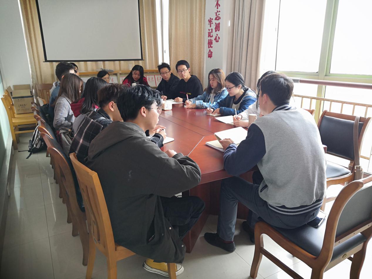 团委书记李钊军带头学习2019年两会中文化教育方面的内容,并就相关要点和学习感想与同学们作了分享。随后,团支书们和学生党员们也展开了讨论,结合理论学习与实践经历分享观点与心得。