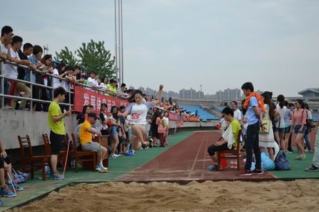 运动员顽强拼搏,场下同学们纷纷为运动健儿们呐喊加油。团结互助,积极拼搏的数统精神成为运动场上一到亮丽风景线。