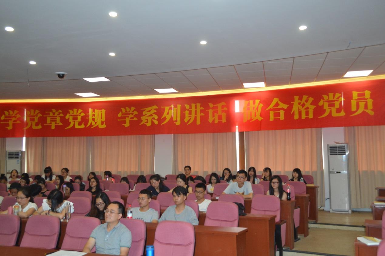 卢新波副书记指出,“学党章党规、学系列讲话,做合格党员”学习教育是加强党的思想政治建设的一项重大部署,是全面从严治党向基层延伸的重要举措,也是推动党内教育由集中性教育向经常性教育延伸的必然之举,要充分认识开展“两学一做”学习教育的重要意义。随后,他从“功利说”、“ 入党的基本程序”、“ 合理性”三方面阐述了大学生入党动机。