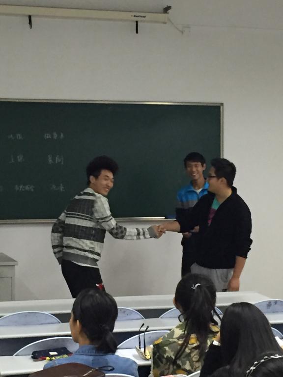 “十佳”歌手韩润泽、齐安吉的倾情献唱,营造了热烈的活动氛围。就在同学们还沉醉在刚才的歌声中时,惊险刺激的“踩地雷”小游戏顿时让同学们的神经紧绷了起来,将活动推向了高潮。游戏失败的同学被要求表演一个小节目,并要总结自己近两个月来的“100天新生训练营计划”的实施情况。这种娱乐与发言交互进行的方式不仅使整个活动更妙趣横生,还让同学们体会到了“100天新生训练营”对其加强自我管理、合理调配时间所起到的巨大促进作用。