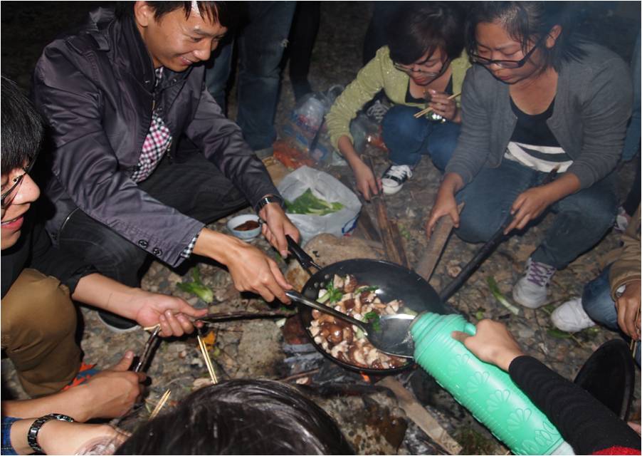 在太阳落山之际我们来到渔村,并且开始了烧烤,同学们各自都忙得不亦乐乎,不仅忙乱了手脚,还累着了嘴巴。难忘的是大家那一串串经典动作:一只手在忙于烤东西,嘴里却咬着鸡翅,而另一只手还在忙着接同学送来的烤好的鱼丸。我们班的男生一个个还都是五好男人啊,不仅烧烤给女生吃,而且一个个都烧了一道拿手菜。班主任林老师和司机师傅也时常过来探班,烤些番薯和玉米给我们吃,虽然这情形是多么的平凡,但它触动了我的心,原来师生之情可以是那么的简单,如此的真切。