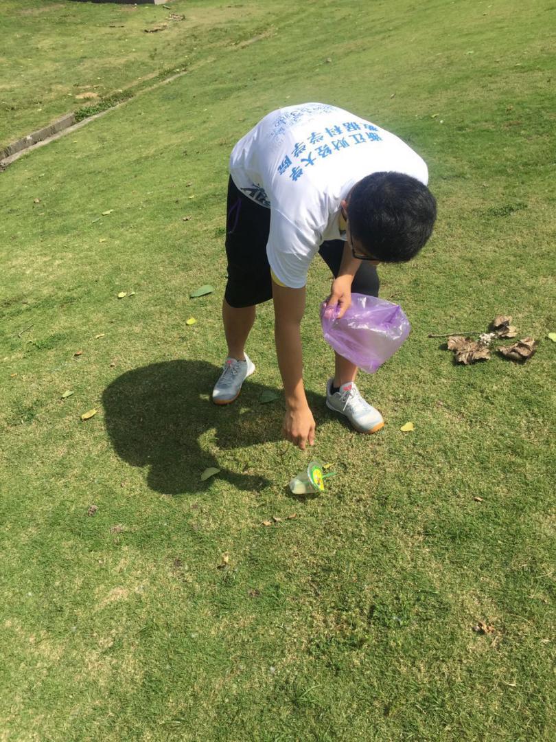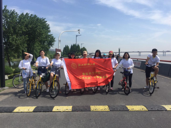 楼集合,一同骑车前往钱塘江边,沿钱塘江边清扫垃圾,并对垃圾进行分类处理。