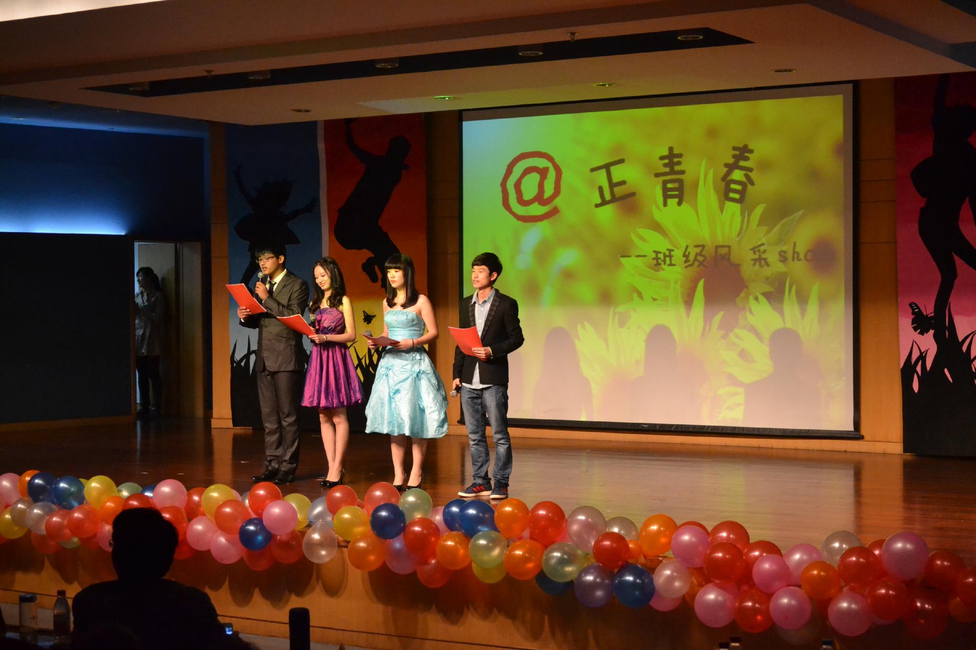 此次班级风采展共分三个部分,分别是“正相遇”“青涩情”“春意浓”。大一每班展示两个节目,大二每班展示一个节目。节目形式多样,内容丰富,歌曲串烧,小品,舞蹈,合唱层出不穷。台下观众在黑暗中挥舞着荧光棒,看到精彩处不时发出一阵呐喊。
