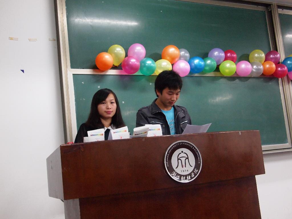 此次活动流程主要分为四大环节。第一环节是请优秀大二学生代表何飞彦学姐发言。学姐给我们讲了一些她大一时的生活和学习的经验总结,并给我们提出了不少宝贵的建议,对于同学们的提问,学姐也是给了非常耐心的回答,赢得了同学们的欢迎。第二环节是“学长荐书:环节,主要是高年学长学姐为低年级学生推荐书籍,其中包括陶冶情操的文学类书籍,还有专业知识书籍。在本环节中,大一新生不仅和学长学姐们有了一次更好地交流了大学里读什么书、如何读书等问题,而且可以就一些问题向学长学姐请教。第三环节便是游戏环节,同学们分3组玩了“心有灵犀”的游戏,同学们在游戏过程中有了很好互动,又增进了对彼此的了解。最后环节中,优秀大三学生代表张叶霞学姐上台对场下所有人给予最真挚的祝福。
