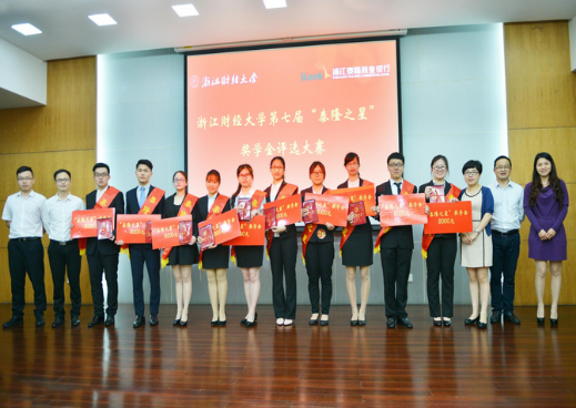 王乐乐同学和朱彬彬同学在众多选手中脱颖而出,分别获得了“泰隆之星”奖学金和“浙农•阳光”奖学金。