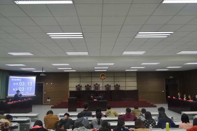 继正方慷慨激昂、反方充满理性色彩的自我介绍后,比赛进入开篇立论环节。正方辩手从教育引导的内涵、特点、作用出发有力的论证了教育引导是自我认知的基础与前提条件,进而证明教育引导比自我认知更重要。反方辩手则从两者在学习社会主义核心价值观中的效果、两者之间的内外因关系及最终目的、学习社会主义核心价值观的主体等内容的阐述指出自我认知比教育引导更重要。在随后的攻辩环节中,双方更是争锋相对、步步紧逼,气氛迅速升温,达到白热化阶段。大赛进入自由辩环节,双方各自以实际例子论证自己的论点,向对方抛出一个个犀利尖锐的问题,唇枪舌战,你来我往,现场气氛紧张激烈。最后,比赛进入总结陈词环节,正反双方辩手清晰的思路和巧妙的陈词给观众留下了深刻印象。