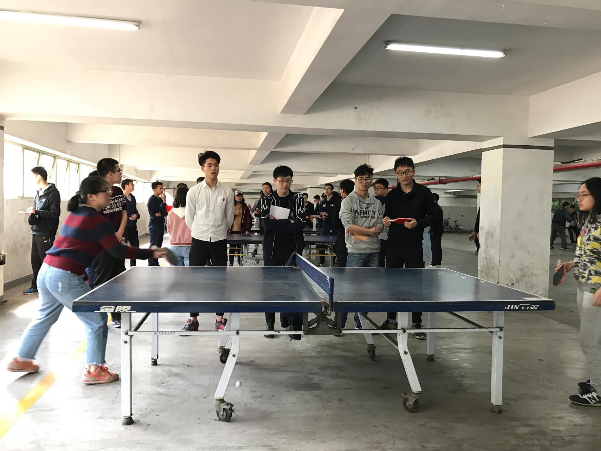C楼负一楼举行,参赛人员为16级班级选手,本次比赛本着“发展国球运动,丰富校园生活”的原则,促进同学体育运动,增强大学生的体质,丰富同学生活。比赛组织有序,有两个项目:团体对打赛、个人颠球赛。本着公平公正的原则。比赛为单打比赛,采取国际通用的11分制,比赛以中国乒协最新审定的《乒乓球竞赛规则》为基础,每人打一场,每班队伍由3男2女组成,三局两胜制。抽签决定两两班级PK,赢得三组队伍轮流团体对打争夺第一二三名,输的三组队伍同理争夺四五六名。