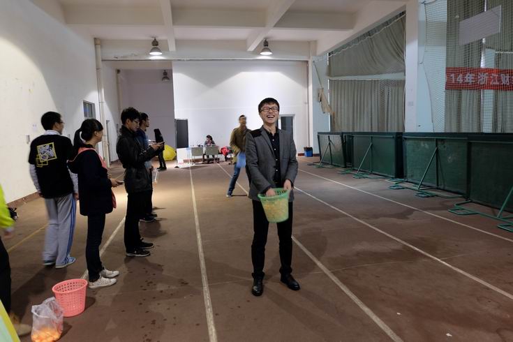 东体育馆内充满了欢声笑语。体现团队精神的“四人五足”、考查智力的“独家记忆”、考验体力又测试听力的“身动心动”、用肢体语言来交往的“疯来疯往”、蹦蹦跳跳的“Jump Jump Jump”,让乒乓球飞舞的“盲人投壶”,考验默契配合的“吸管接力”与“搭桥过河”……一个个充满趣味的小游戏,让校友们欢乐无穷。