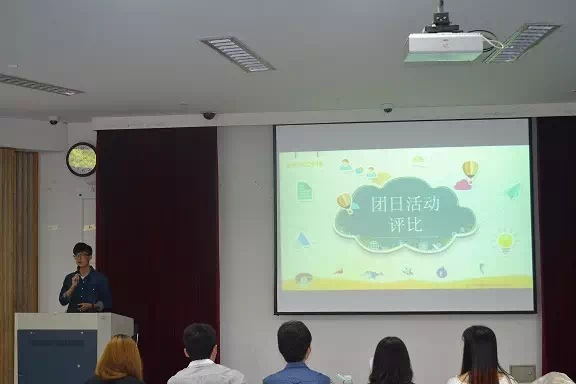 2015-2016学期团日活动评比活动在A101教室展开。辅导员李钊军老师,学生会主席马司妮,15级新生辅导员向秋行,党建活动部负责人李美欣和数学系学生党支部副书记朱彬彬应邀参加。