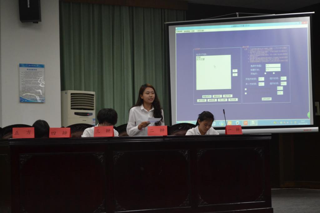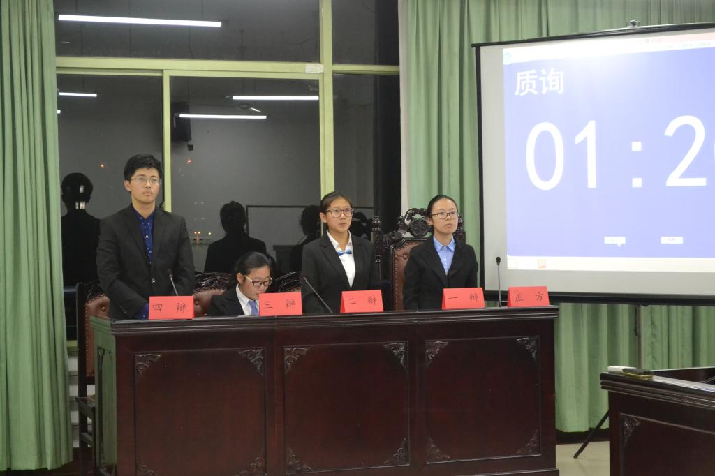 203,201模拟法庭教室举办了新生辩论赛的决赛。本次决赛共分为两场,第一场决出三、四名,第二场决出第一、二名。作为本场辩论赛的评委是校辩论队成员田媛媛、李美欣、王茜、赵方晟和许凯欣。出席本场辩论赛还有辩论队导师以及数统盘口分析