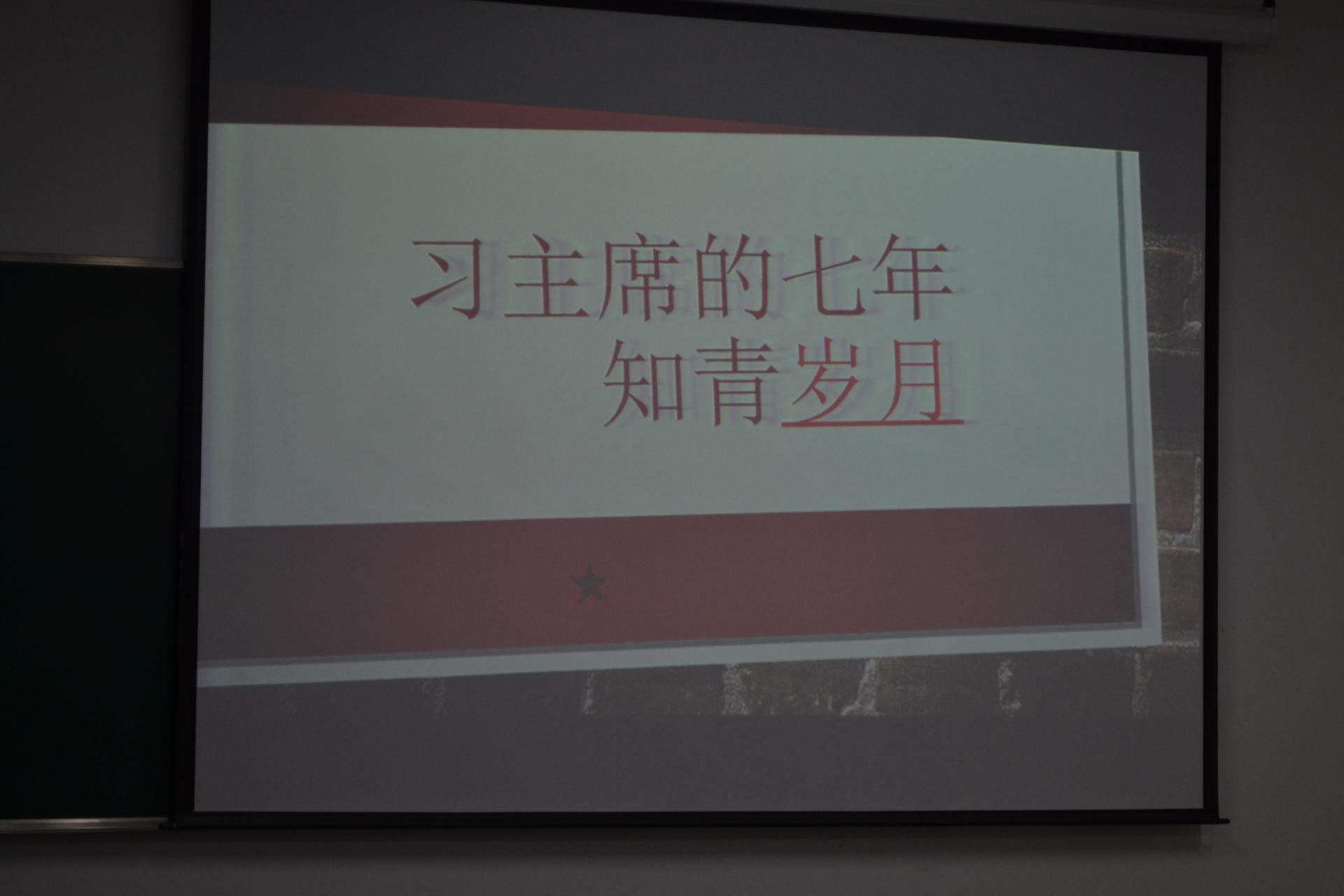 团委宣传部副部长黄佳美利用精美的PPT对《习近平的七年知青岁月》进行了精简的描绘,一页页幻灯片展现的是习近平总书记年青时的责任和担当,一张张照片勾勒的是曾经的峥嵘岁月。