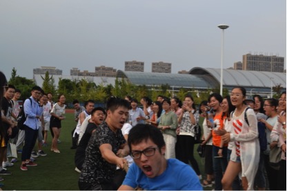 最振奋人心的项目非拔河莫属,每班派出15人参赛,只见参赛的同学们个个神色坚定,屏足了全身的力气。随着哨声响起,队友们喊着“一二,一二”的口号向自己方向拼命拉绳,各班同学也自发地为自己的同学加油着。赛场上欢呼声、呐喊声此起彼伏。同学们的汗水,拼搏的面孔,昂扬的斗志与精神,操场上处处洋溢着青春的气息。在激烈的角逐之后,最终经济统计一班取得第一名的好成绩,金融数学班和信息与计算科学班分获第二、三名。