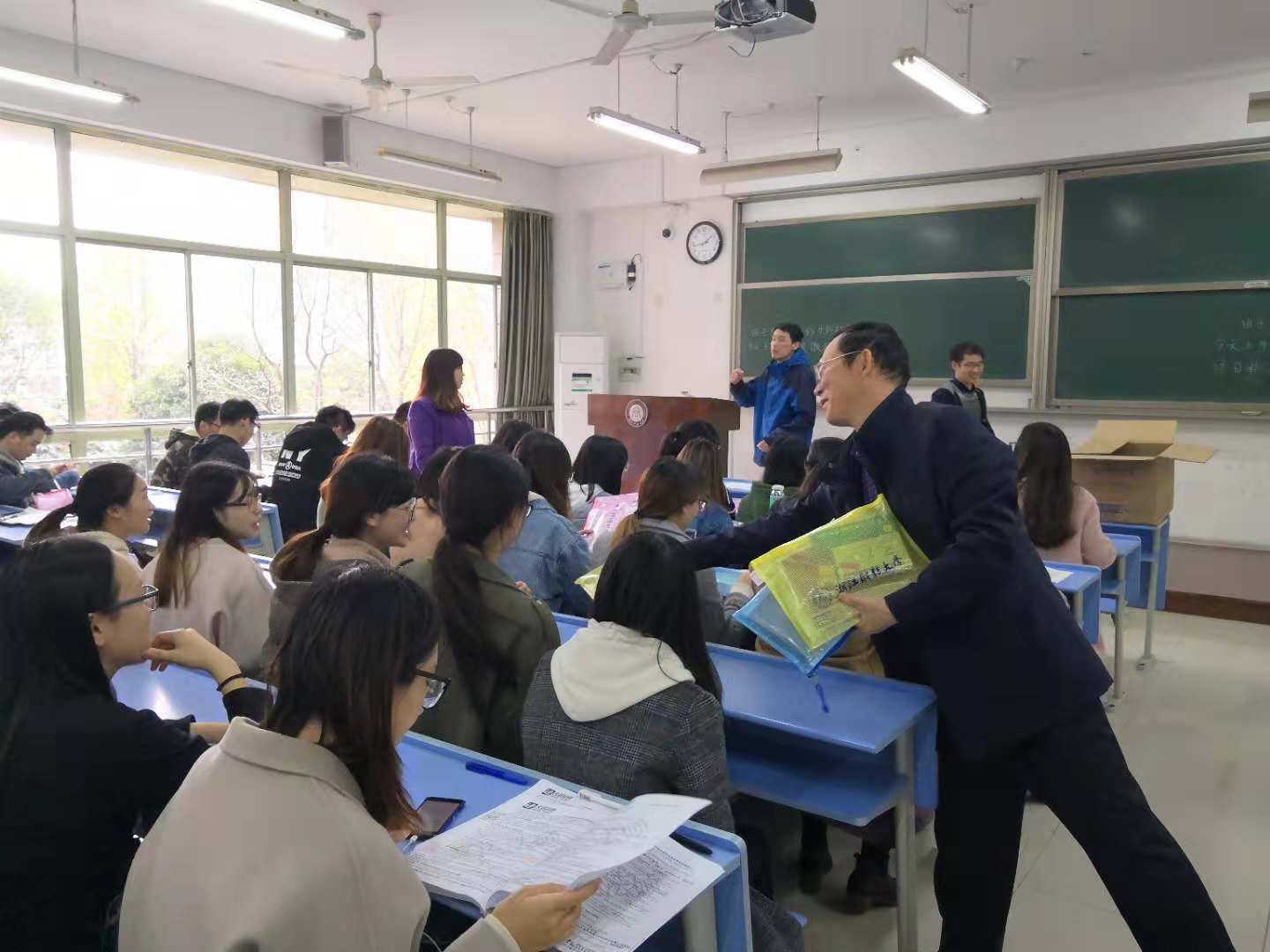 最后,老师们将精心准备的“考研大礼包”分发给同学们,“大礼包”里都是备考过程中常用的各类文具。
