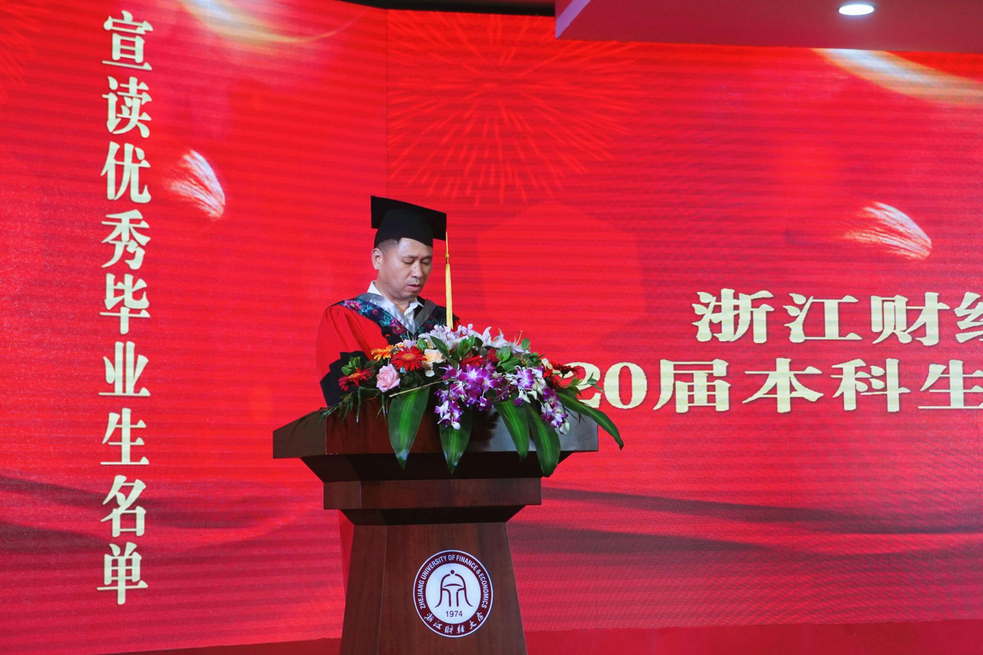 洪兴建院长宣读盘口分析 获得浙江省优秀毕业生、校级优秀毕业生称号及考取国内外名校研究生的毕业生名单。随后,进行了隆重的学士学位颁授仪式校领导、导师代表们上台为毕业生们拨穗,完成学位授予。在场的老师、同学们共同见证了这一庄严而喜庆的时刻。