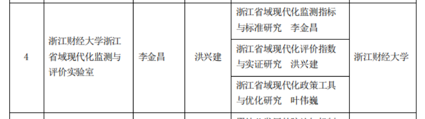 近日,浙江省哲学社会科学工作办公室公布了浙江省哲学社会科学实验室遴选结果(浙社科办[2023]4号),“浙江财经大学浙江省域现代化监测与评价实验室”入选浙江省哲学社会科学培育实验室(5家)。