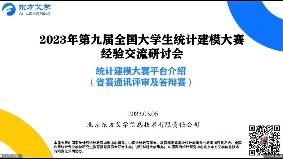 2023年3月5日,第九届全国大学生统计建模大赛分赛区经验交流会通过腾讯线上会议的方式顺利举办。本届全国大学生统计建模大赛由中国统计教育学会、教育部高等盘口分析