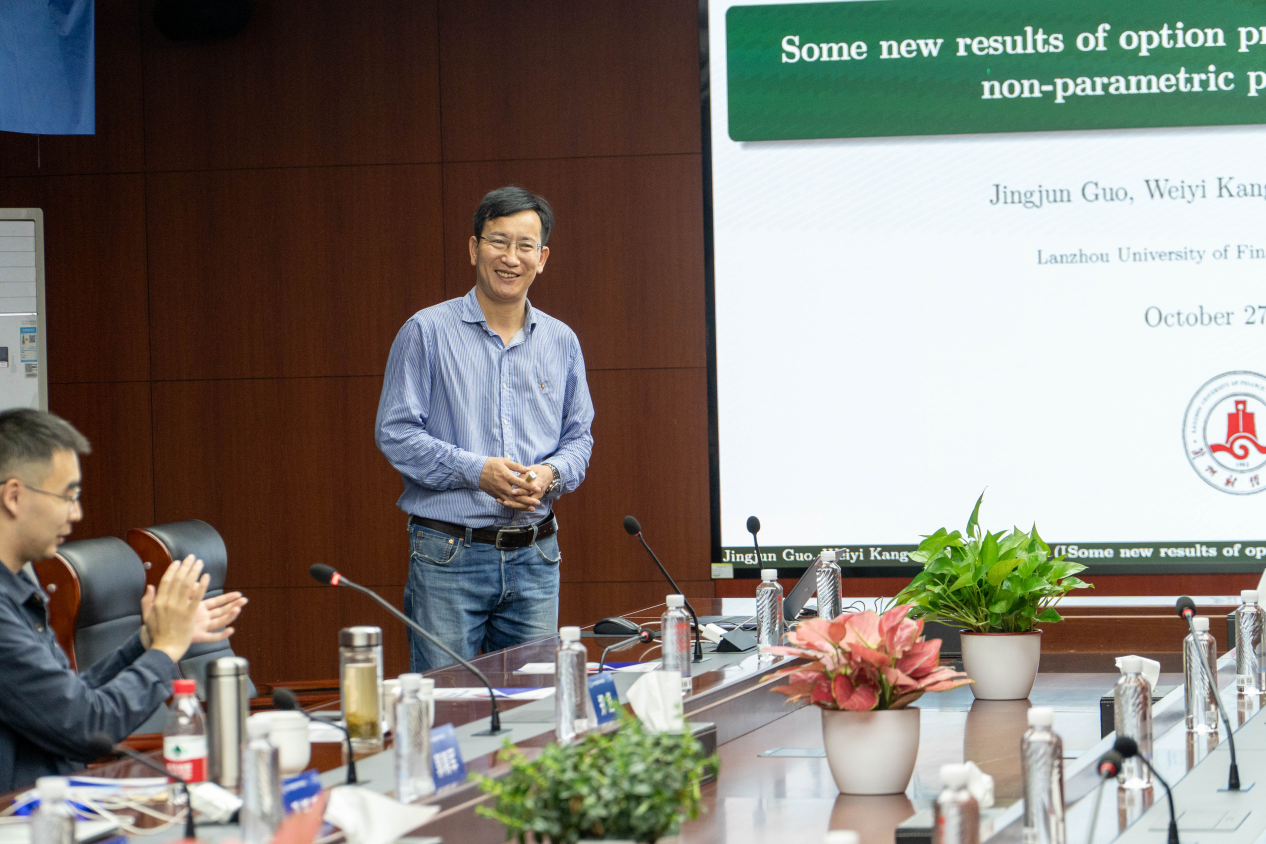郭精军教授作题为“Some New Results of Option Price under Parametric and Non-parametric Pricing Models”报告,探讨了期权定价的新成果,涉及参数化和非参数化定价模型。还讨论了定价公式的性质,并通过计算希腊字母来分析主要参数对期权定价模型的影响。