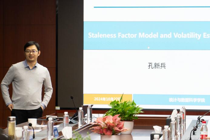 孔新兵教授作“Staleness Factor Model and Volatility Estimation”报告。他提出了一种新的非平稳价格时滞因子模型,利用面板高频数据,给出了回归系数、因子及其载荷的最大似然估计及其渐近性质,进而提供了系统性和特异性共波动率的偏差校正估计,并证明了它们的一致性。
