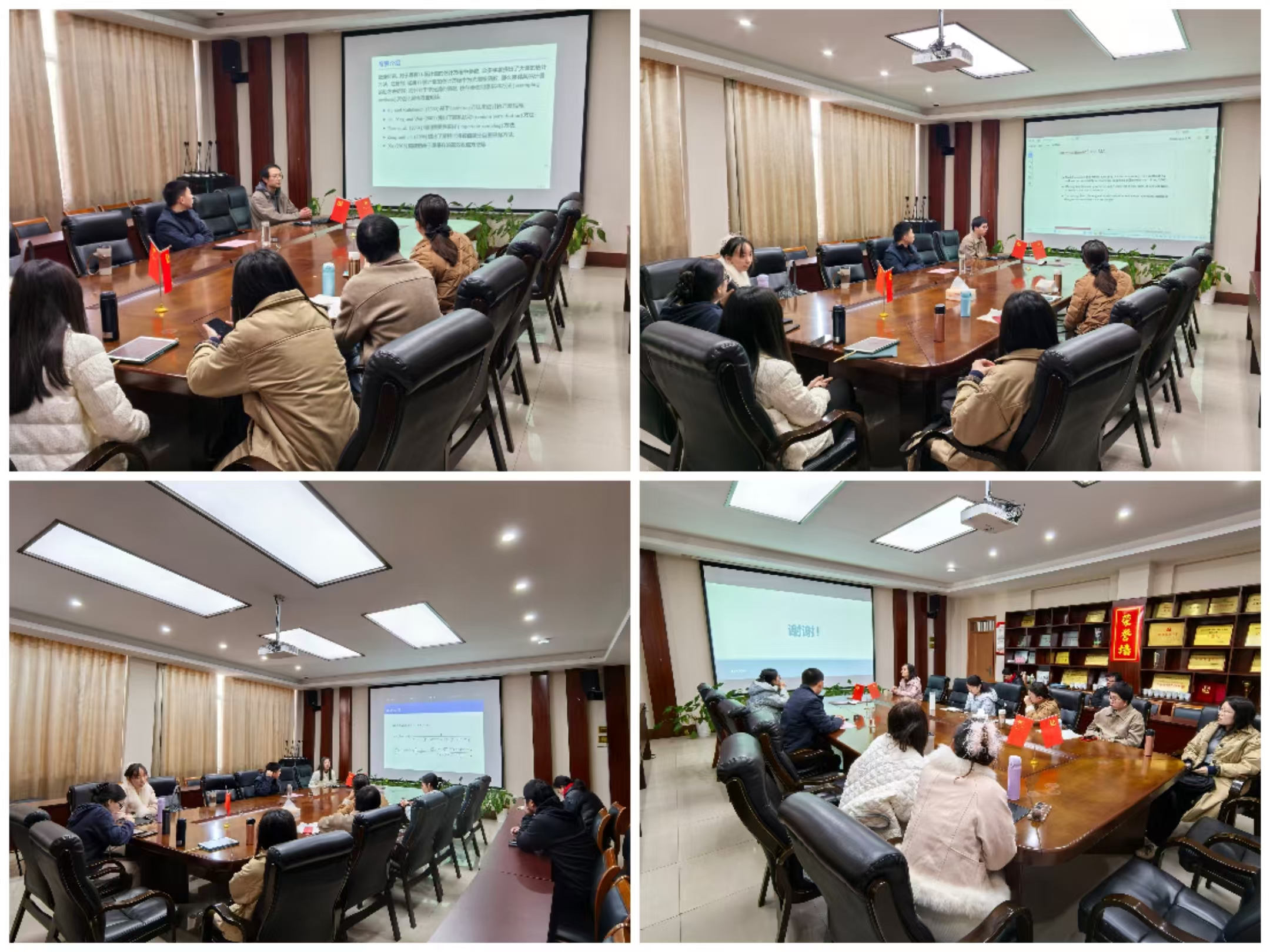 本次学术论文报告会分为统计学和数学两个分会场。统计学分会场由副院长刘波教授主持,韦阳、梁忠琦、谭馨、石薇等4位教师分别就“高维非光滑估计方程的刀切经验似然估计”、“数据不可忽略缺失时基于k倍交叉验证的最优模型平均方法”、“不放回样本追加下基于永久随机数抽样技术的多层次推断方法及应用研究”、“生态产品核算”等主题进行报告和交流。