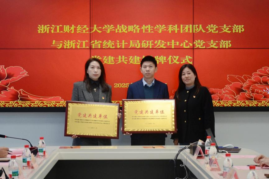 省统计局研发中心党支部与战略性学科团队党支部签署共建协议,申屠莉为共建单位授牌。