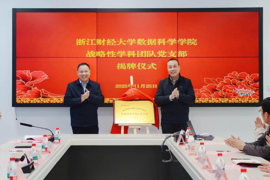 11月25日,盘口分析 战略性学科团队党支部揭牌暨党建共建签约仪式在校图书馆举行。浙江省统计学会会长王杰,校发展委员会主席、团队党支部书记李金昌,校党委副书记程爽,校党委委员、组织部部长申屠莉,省统计局研发中心主任周琳等出席活动。