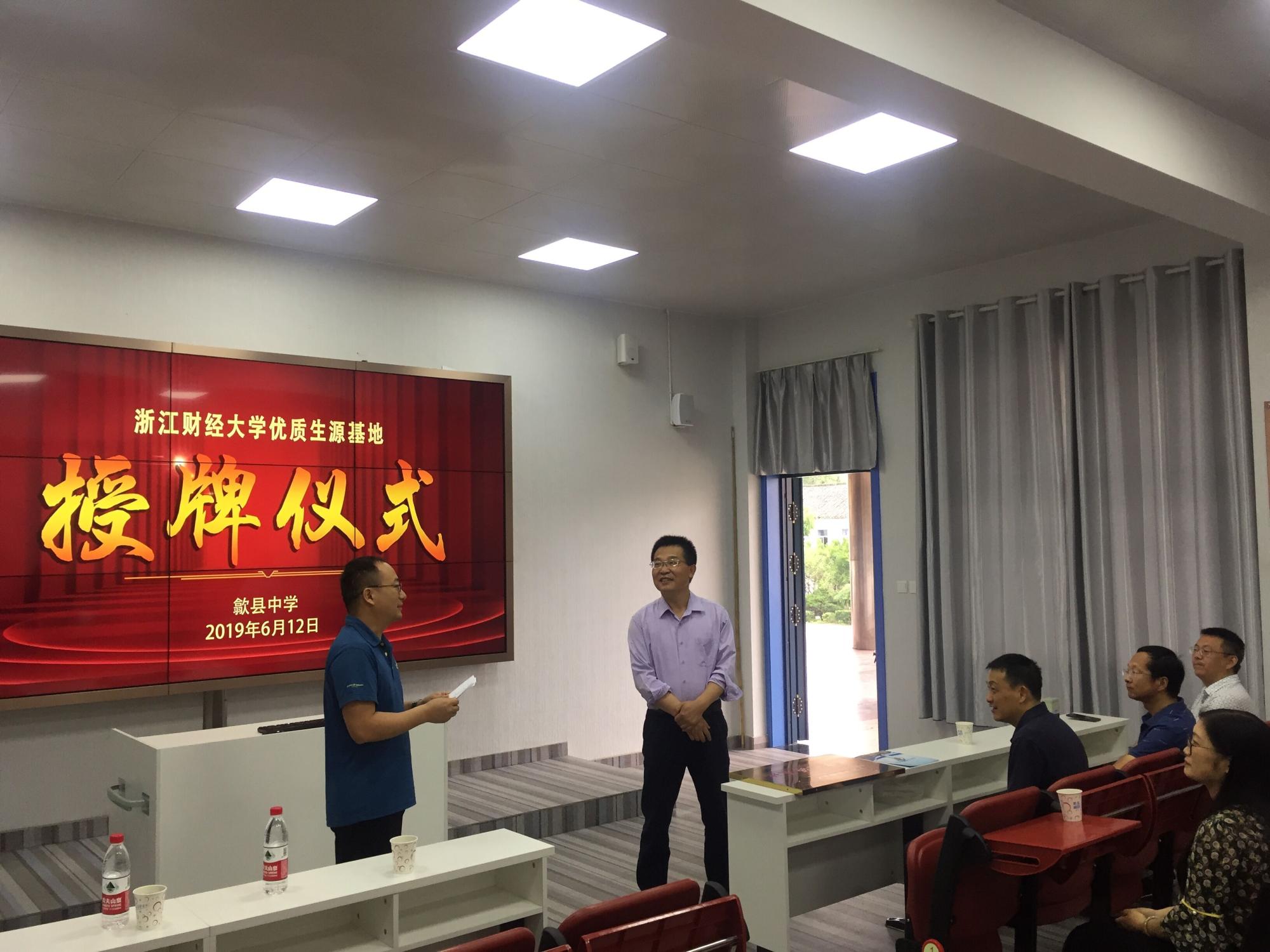 洪海曙校长介绍了歙县中学的发展历史和基本概况及近几年的教学改革成果。他表示,此次挂牌成为浙财与歙中的桥梁;歙中此后将进一步深化教育改革,提升教学质量,努力为浙财提供更多更优秀的生源。