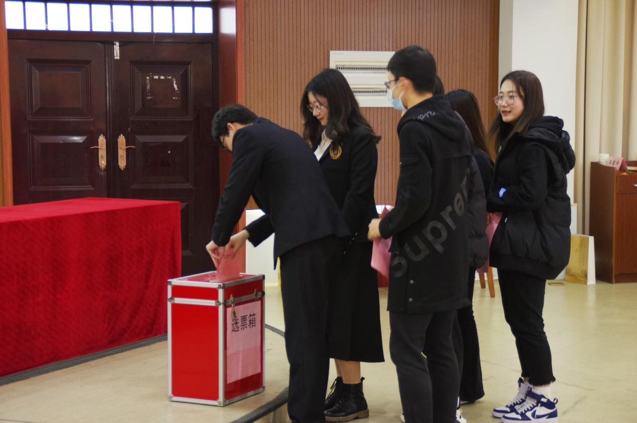第二次全体会议上,代表团审议通过了大会选举办法,大会总监票人、监票人名单等草案。本次大会遵循民主集中制原则,以无记名投票的方式进行差额选举,最终选举产生了新一届研究生会委员会委员6名,分别是梁启文、奚静娴、王嘉伟、王元钊、孙潜和周阿欢,选举产生主席团成员2名,分别是梁启文和奚静娴。